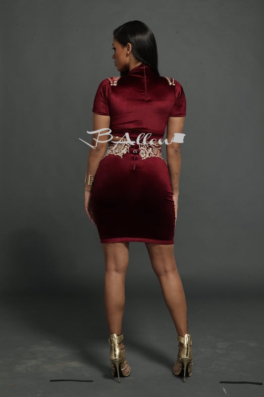 Luxury warm velvet that's applied with a beaded lace appliqué giving a bold statement for fashion piece. This garment has lots stretch and fit every curve to perfection. Please add your height to notes so this dress will fit perfect in length.