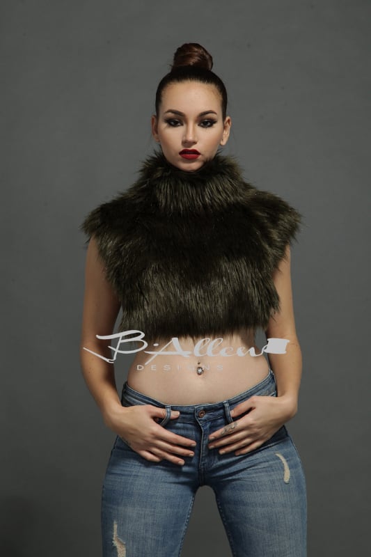 Made out of faux fur very fluffy. This piece can be worn many different ways such as over a dress,shirt,jacket,pea coat or even by it self showing a little side boob. This is most definitely a show stealer that every lady must have.